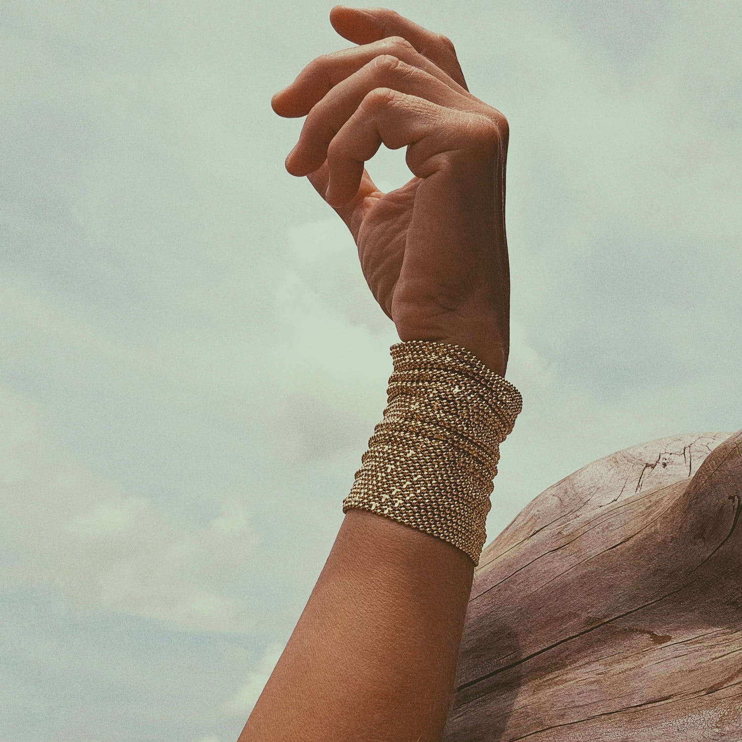 Bisjoux - Brass mesh woven beaded bracelet 3 styles handmade: Large
