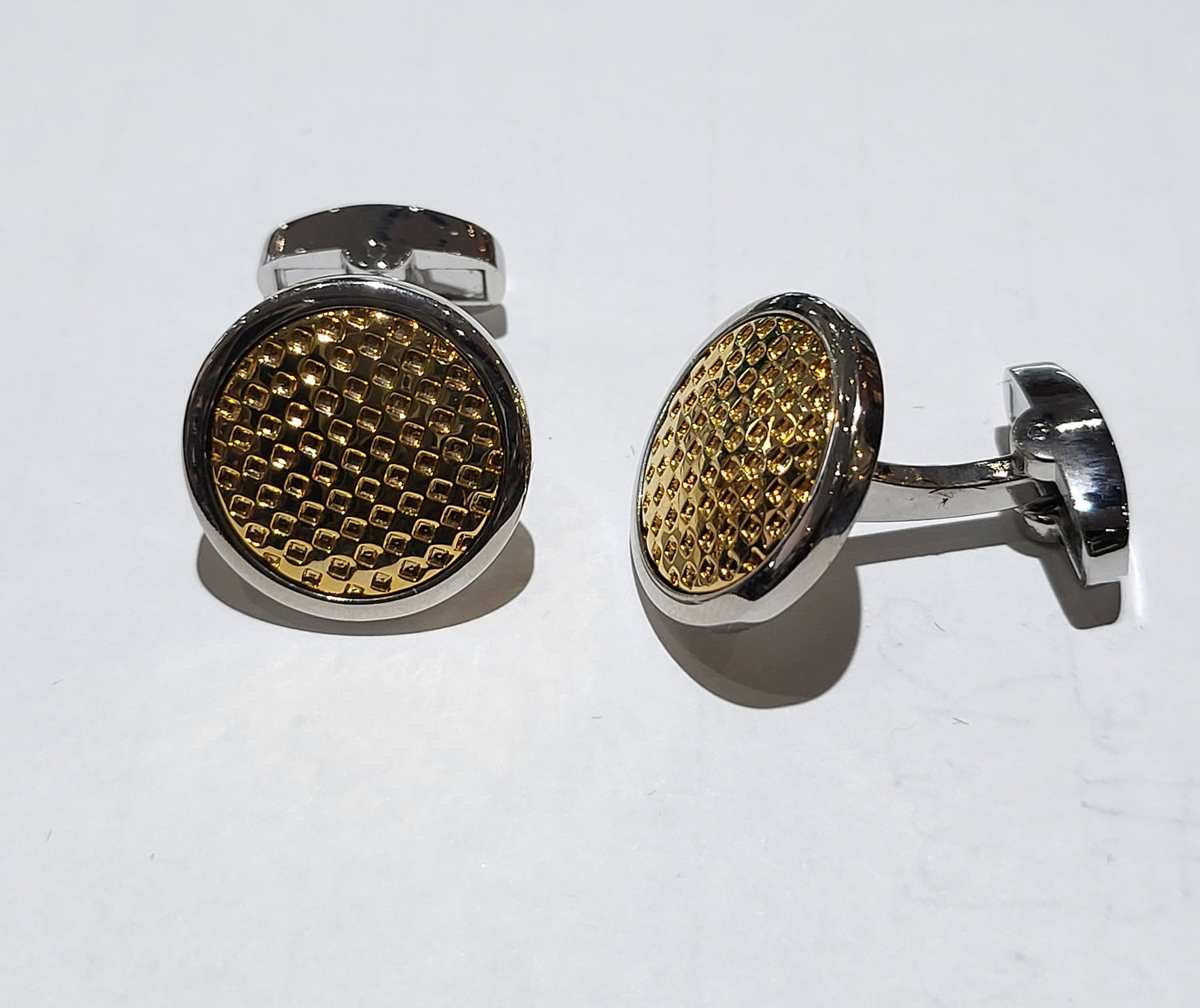 Enzone Cufflinks 2 Tone Silver Gold Waffle Weave