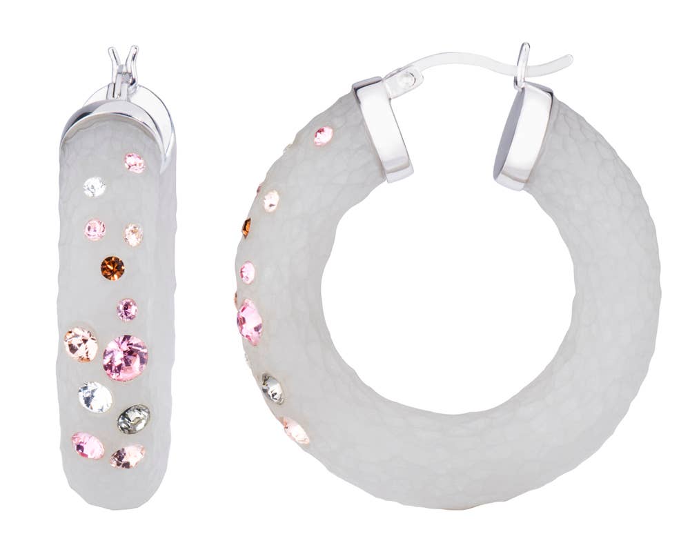 Handcrafted Lucite - Colorful Confetti Swarovski Crystals - Click-Top Hoop Earrings
