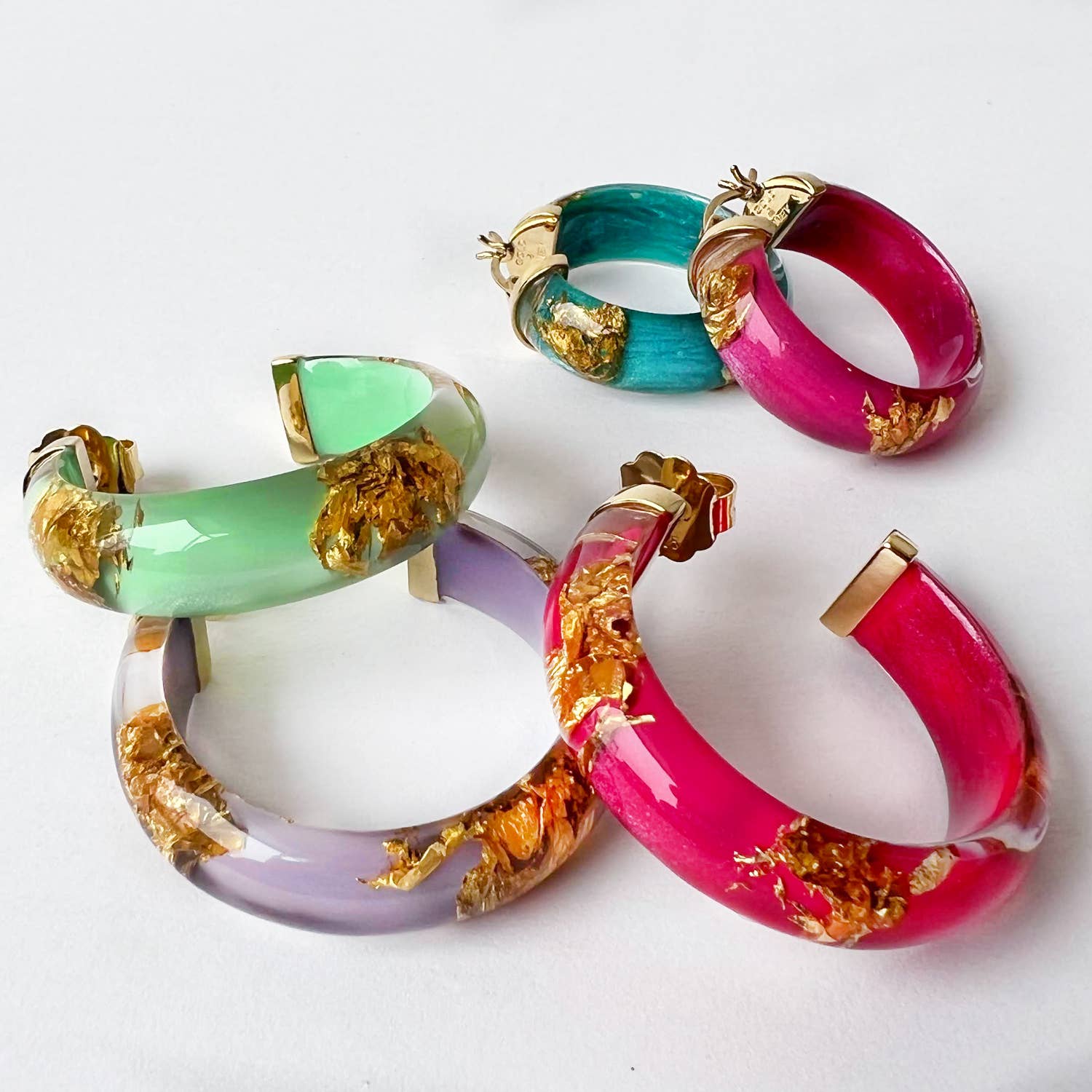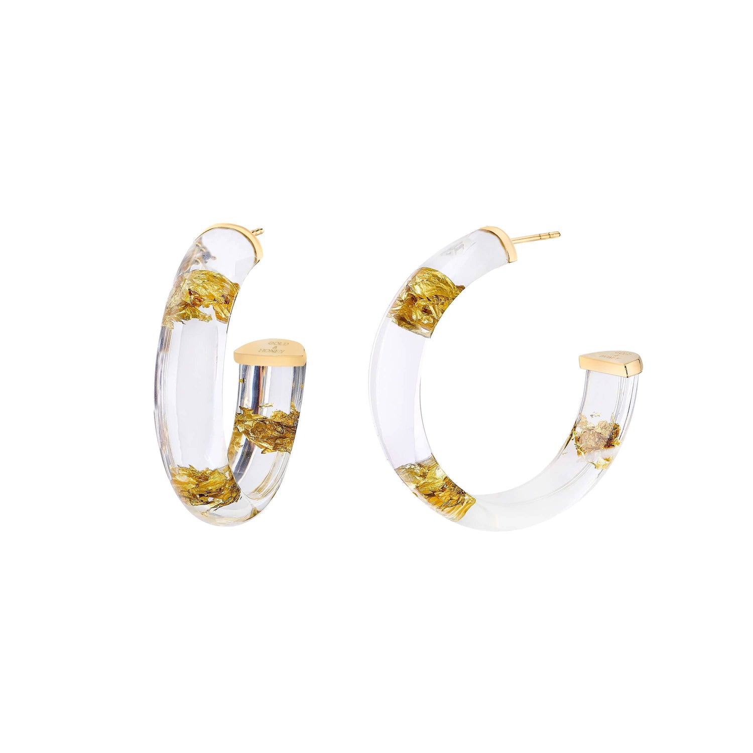 Gold & Honey - 1.5" Clear 24K Gold Leaf Hoops