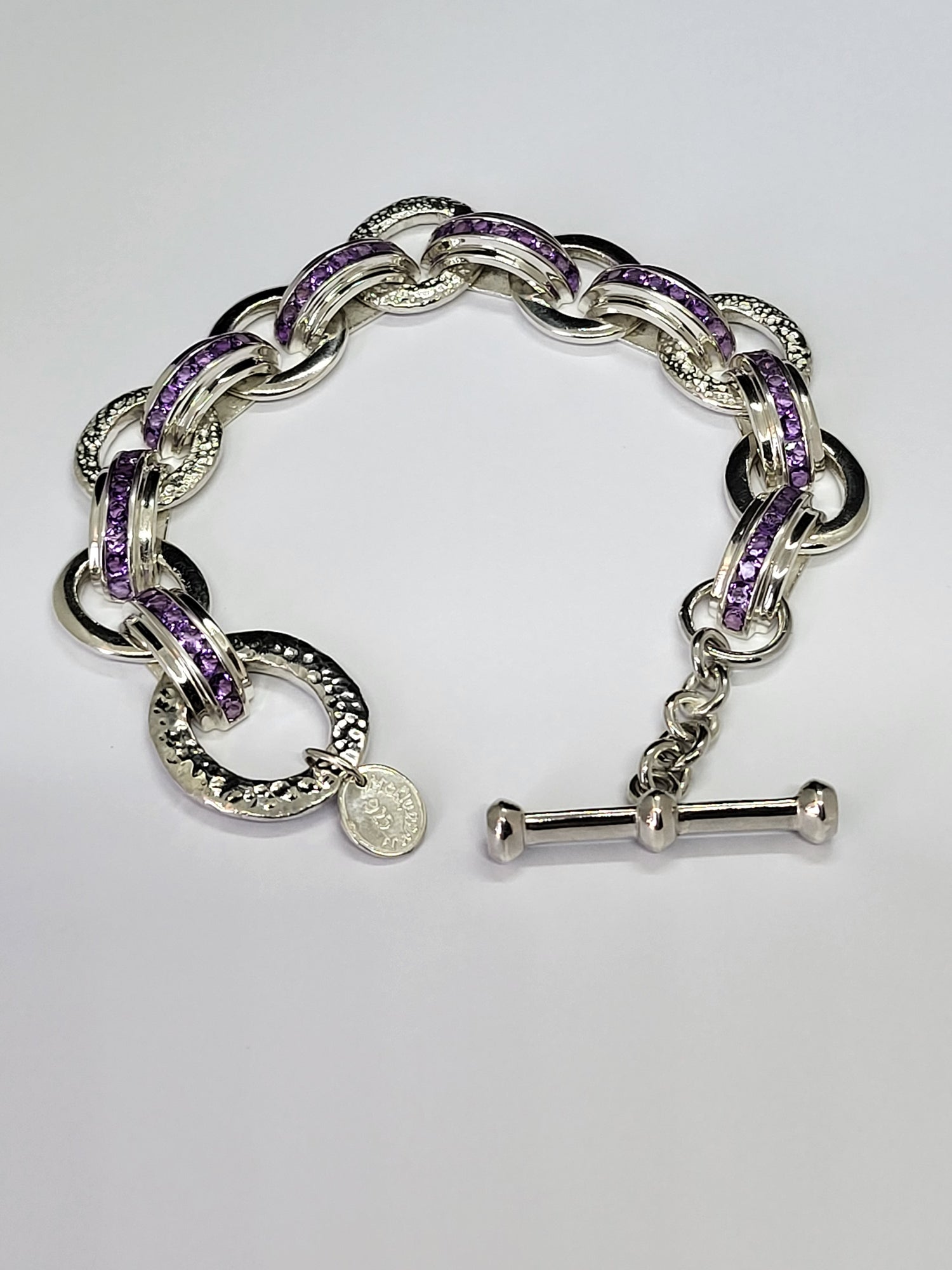 McQueens Custom .925 Hammered Sterling Silver Bracelet Purple Amethyst 9"