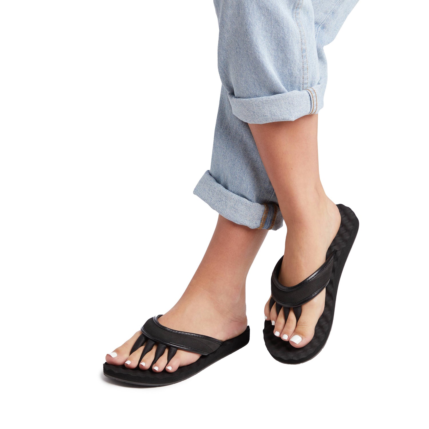 2. A TEXTURED REFLEXOLOGY FOOTBED that keeps feet in place without having to grip the shoe with our toes. The recovery sandal also includes a textured footbed which provides massaging relief in every step.