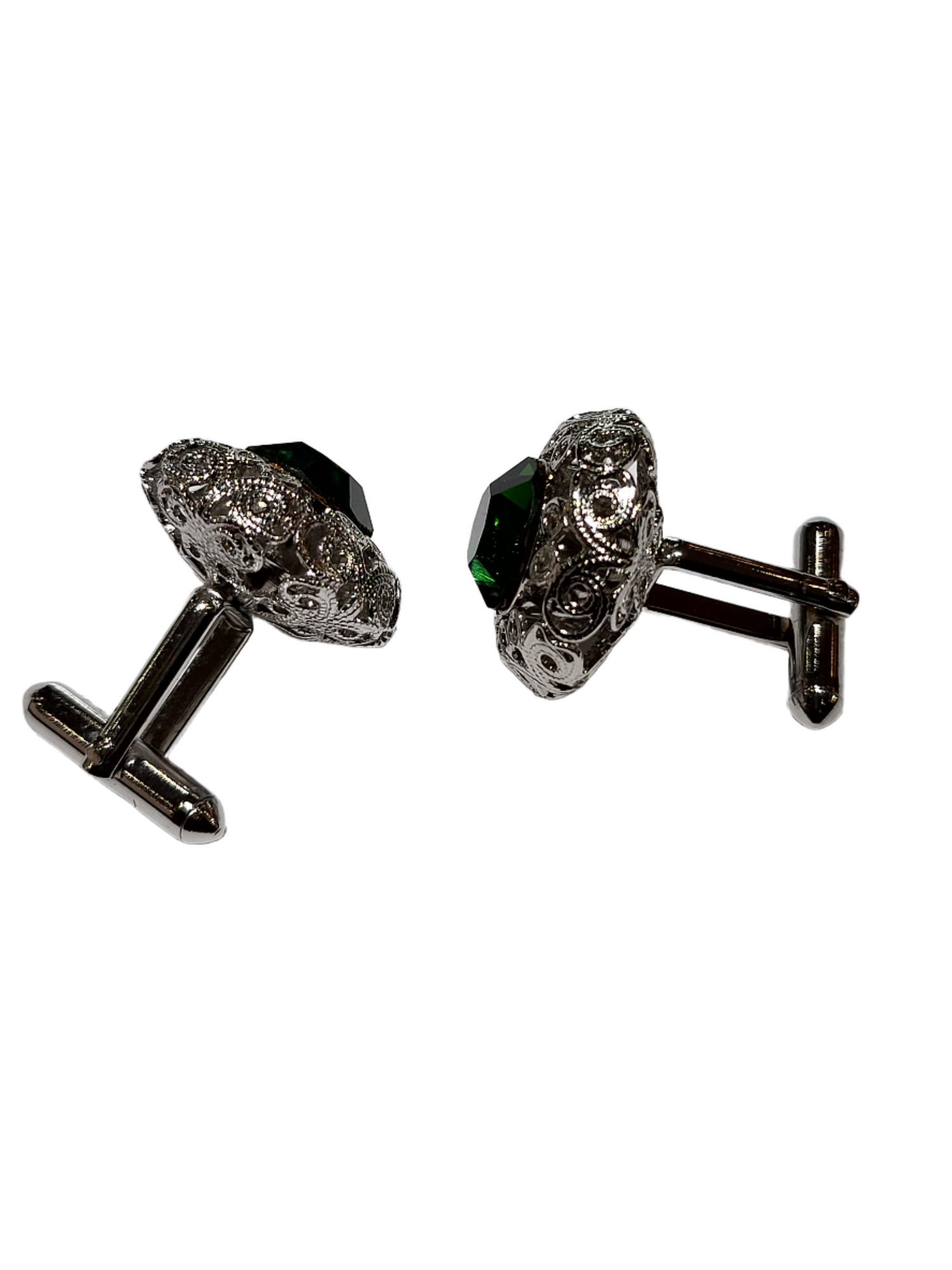 Silver Plt Filigree Emerald Green Faceted Stone Glass